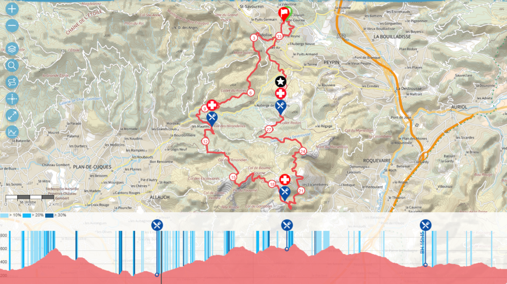 Ensuite vous vous dirigerez vers la célèbre grotte du Grosibou et le superbe Pic du Taoumé avant de vous diriger vers le ravitaillement qui vous attend au col du Garlaban (km 19) afin de reprendre des forces !