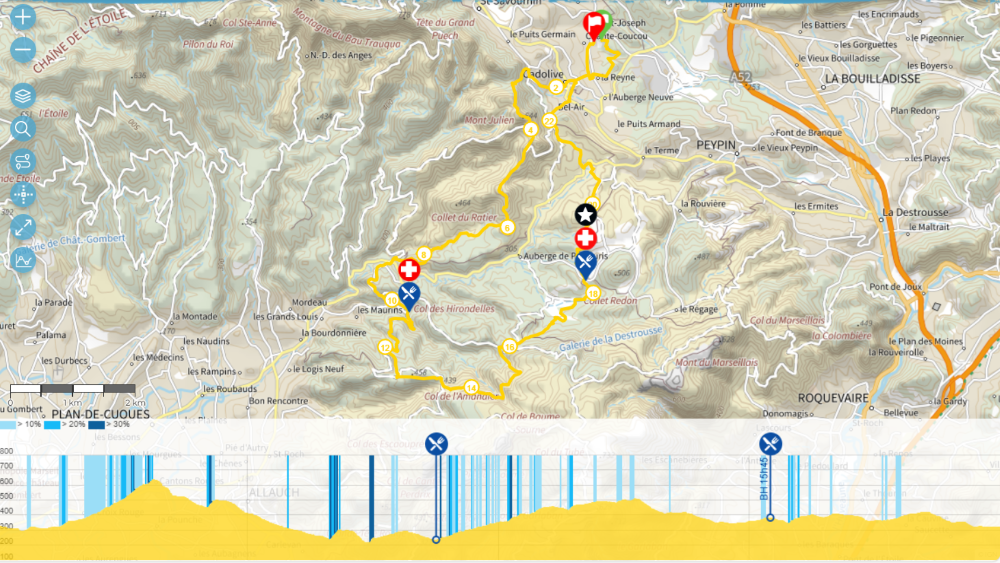 La course traverse Cadolive sur les 2 premiers km et très vite on s’attaque à une belle montée en direction du Mont Julien.